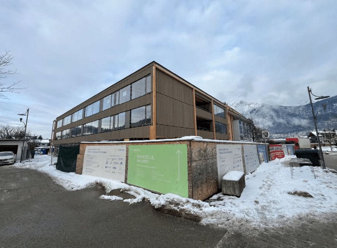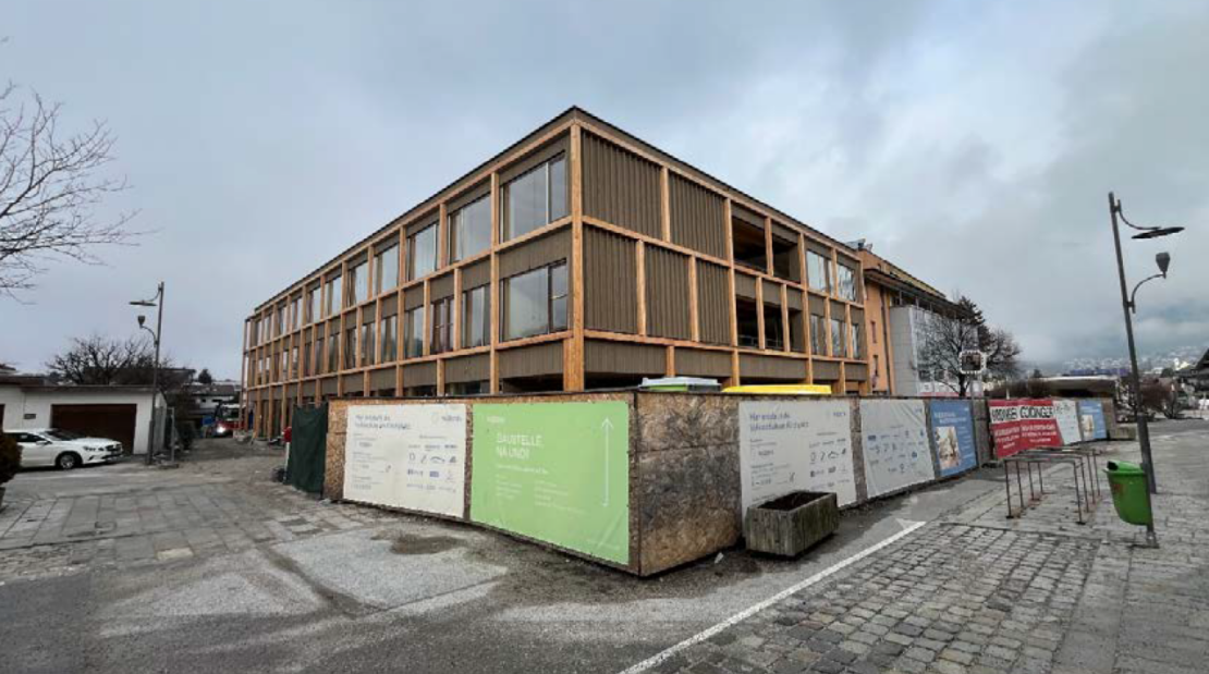 Im Zentrum von Wattens entsteht eine neue Volksschule – 11 Klassenräume, Aula und Mittagstisch sowie Turnhalle. Die Umsetzung wird in Holzbauweise erfolgen. Fertigstellung des Projekts ist für Ende 2025 geplant.