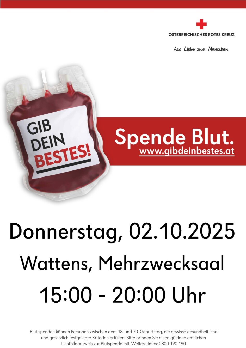 Blutspendeaktion 2.10.2025, Mehrzweck Oberdorf