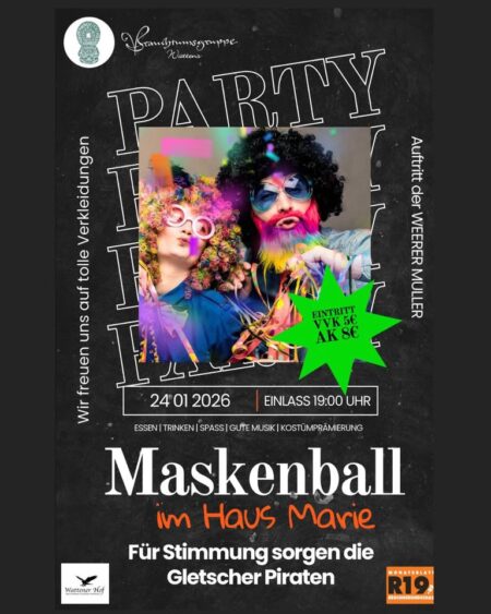 Essen/Trinken/Spass/gute Musik/ Kostümprämierung - Für Stimmung sorgen die GLETSCHER PIRATEN, Auftritt Weerer Muller, wir freuenuns auf tolle Verkleidungen